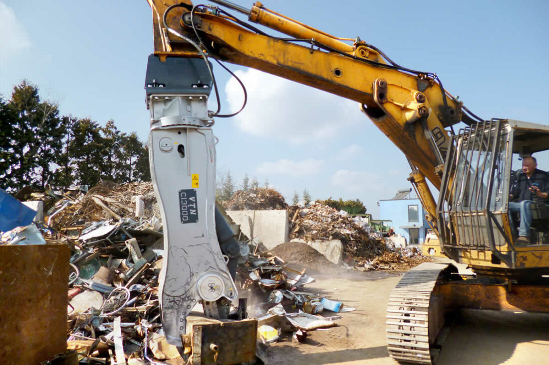 Available with shear force up to 600 tons, these attachments can be mounted on excavators or material handlers, offering mobility and versatility in scrap yards and demolition sites.